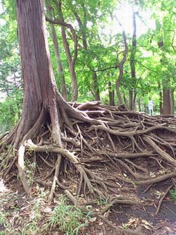 車の通行の音などまったく聞こえない、聞こえるのは木々の枝や葉が風にこすれる音。